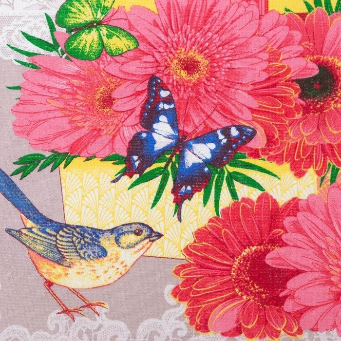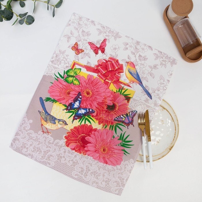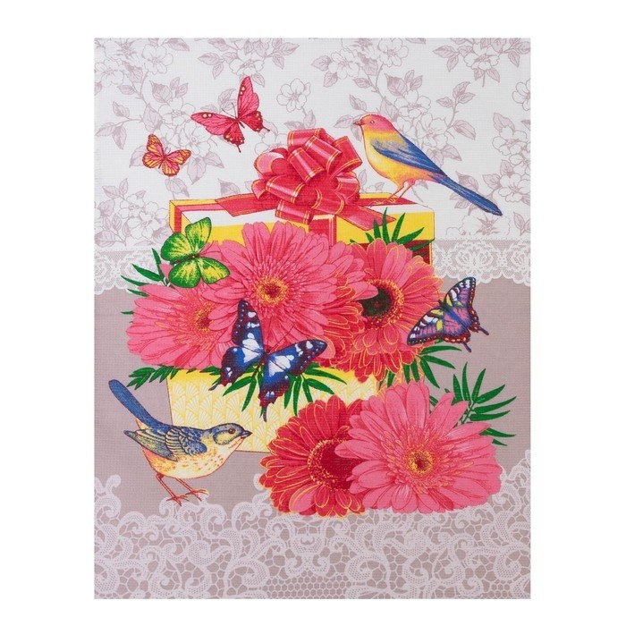 Полотенце 45×60 см, Герберы, розовый, вафля, 160 гр/м2, хлопок 100%