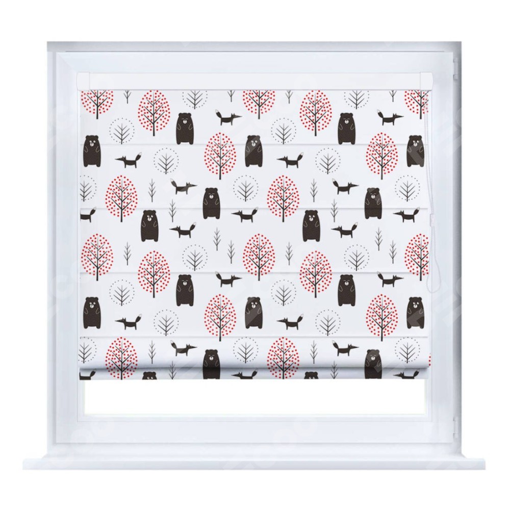 Римская штора производителя «Cortin», устанавливается на створку окна, пошита из ткани блэкаут с нанесением сублимационной печати «Сканди лес». Штора шьётся по индивидуальным размерам, для данного типа римской шторы возможная ширина от 35 до 150 см., высота до 250 см.