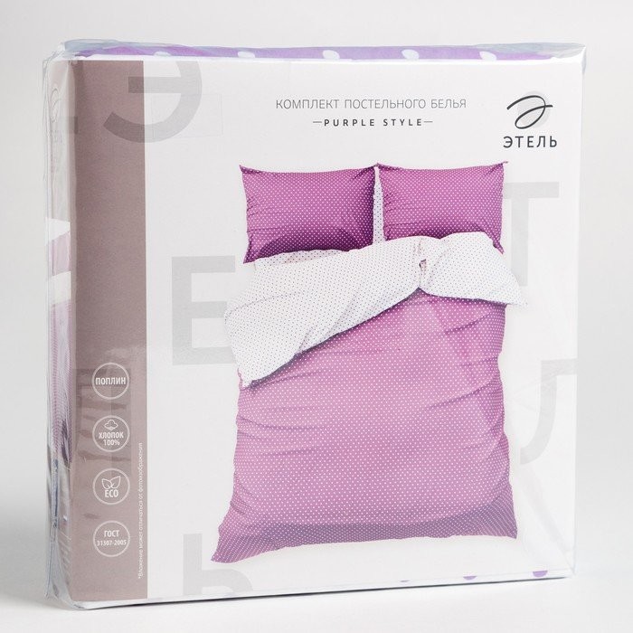 Постельное бельё «Этель» 1, 5 сп. Purple style 143×215, 150×214, 50×70−2 шт, поплин, 125г/м2