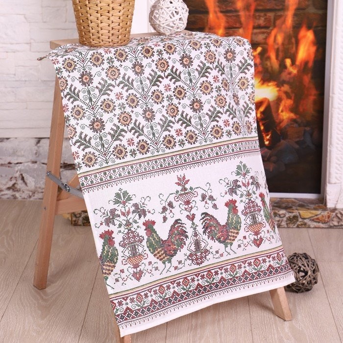 Полотенце 50×70 см, Петушок, рогожка, 170 гр/м2, хлопок 100%