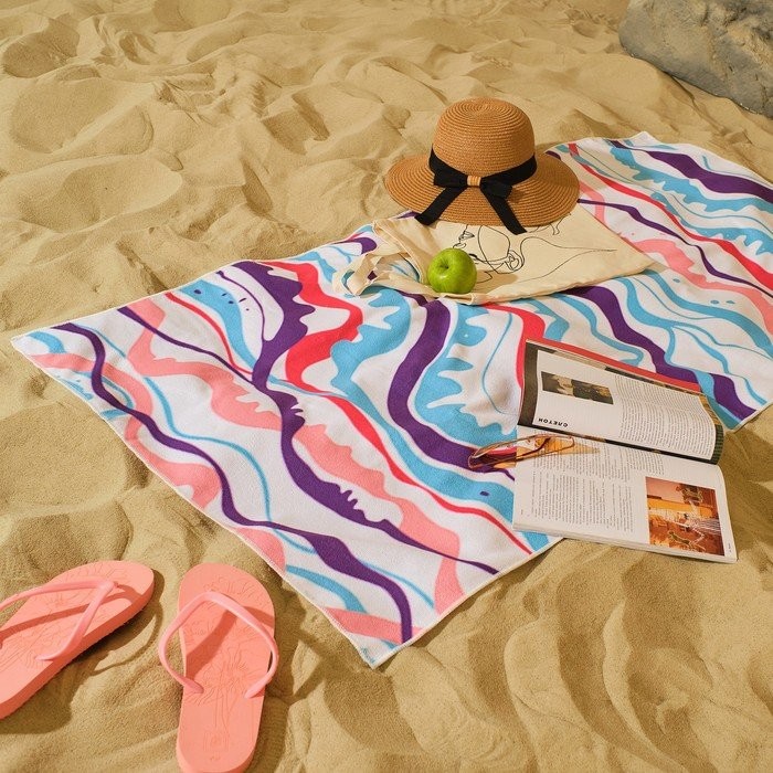 Полотенце пляжное Этель «Волны» 75*140 см, микрофибра, 100% п/э, 230 гр/м2