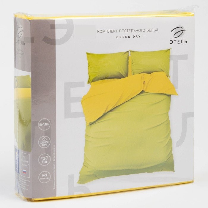 Постельное белье Этель евро Green Day 200*215, 220*240, 50*70−2 шт, поплин