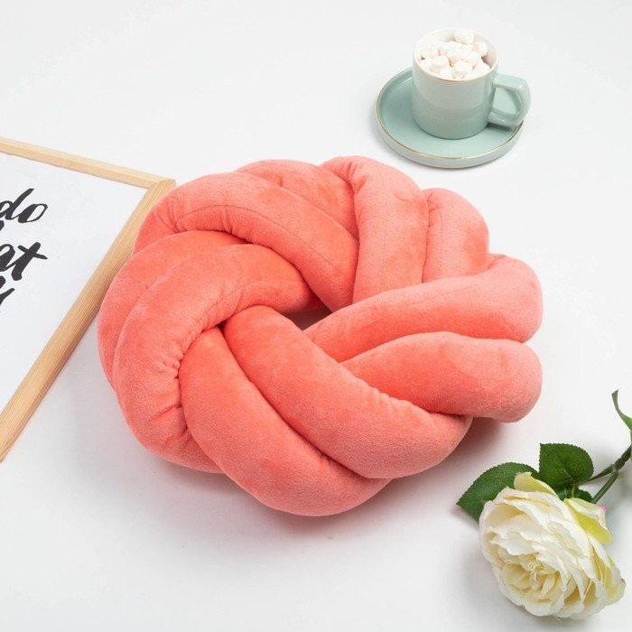 Подушка-узел декоративная Этель, d=33см, цв. коралловый, велюр