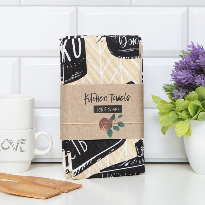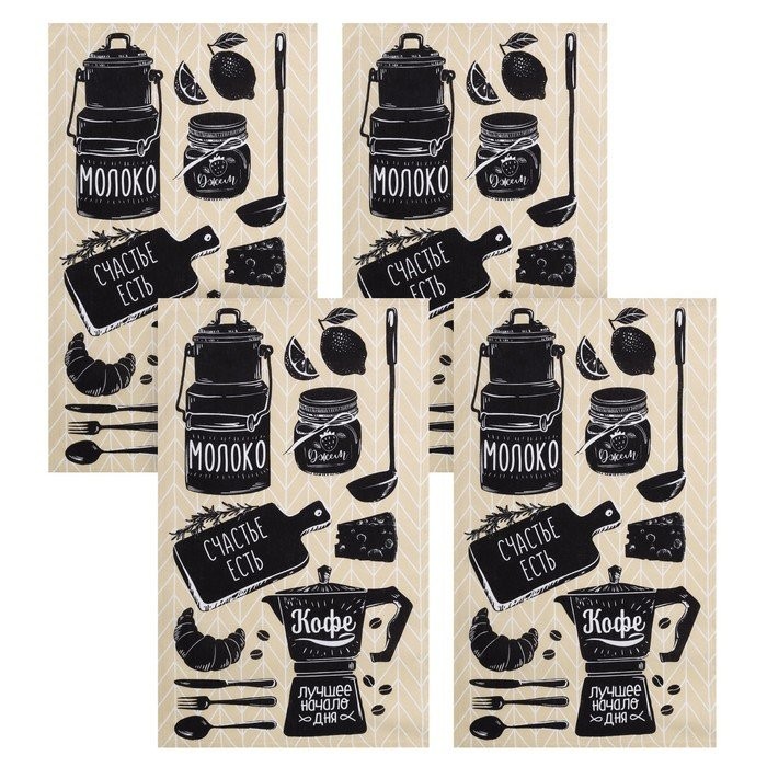 Набор кухонных полотенец Доляна «Кофе» 35×60 см — 4 шт, 100% хл