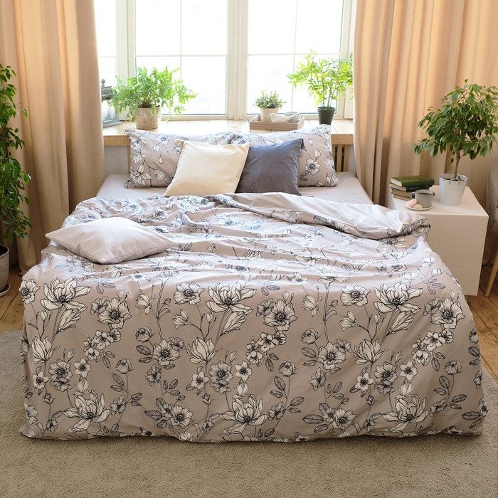 Постельное бельё Этель 1,5 сп Magnolia, пододеяльник 143×215 см, наволочки 50×70 см 2 шт, 100% хл, перкаль