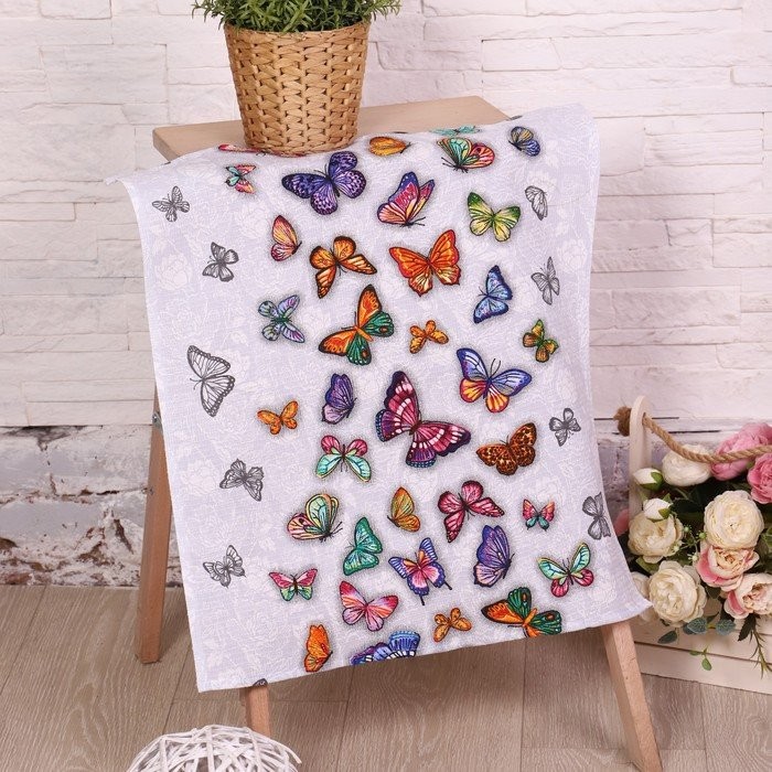 Полотенце 50×60 см, Бабочки, вафля, 170 гр/м2, хлопок 100%