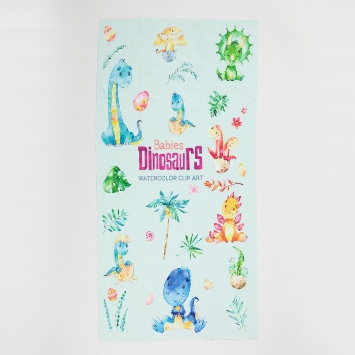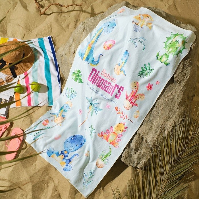Полотенце пляжное Этель «Динозаврики» 75*140 см, микрофибра, 100% п/э, 230 гр/м2