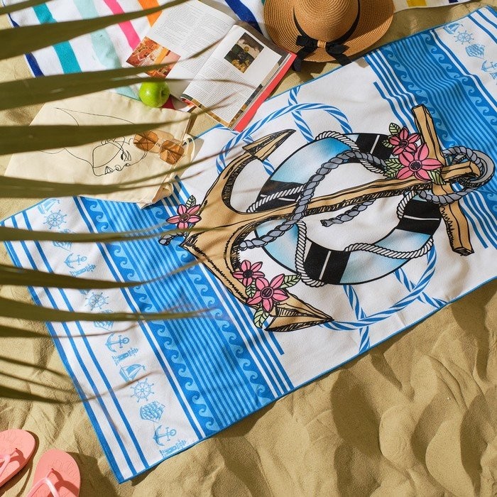 Полотенце пляжное Этель «Якорь» 75*140 см, микрофибра, 100% п/э, 230 гр/м2