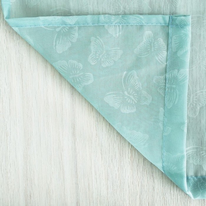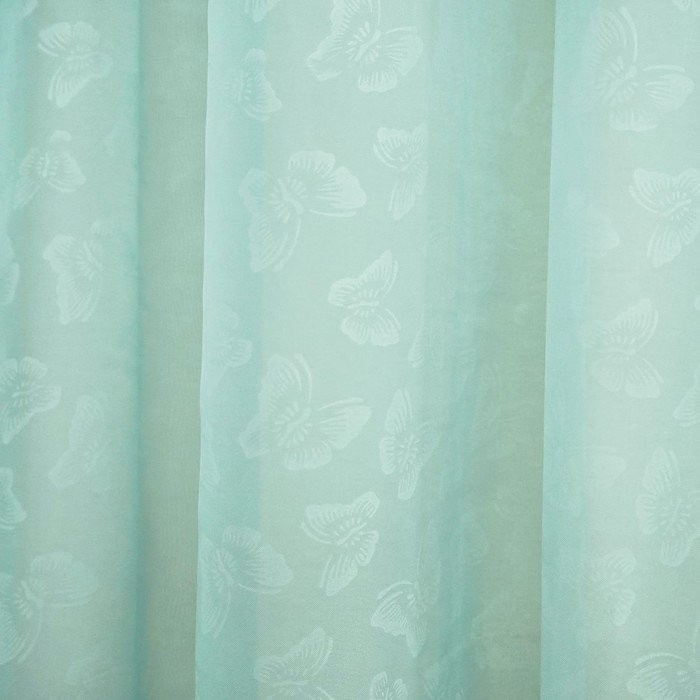 Штора тюль с тиснением бабочки 250×260 см, голубой, шторная лента, пэ