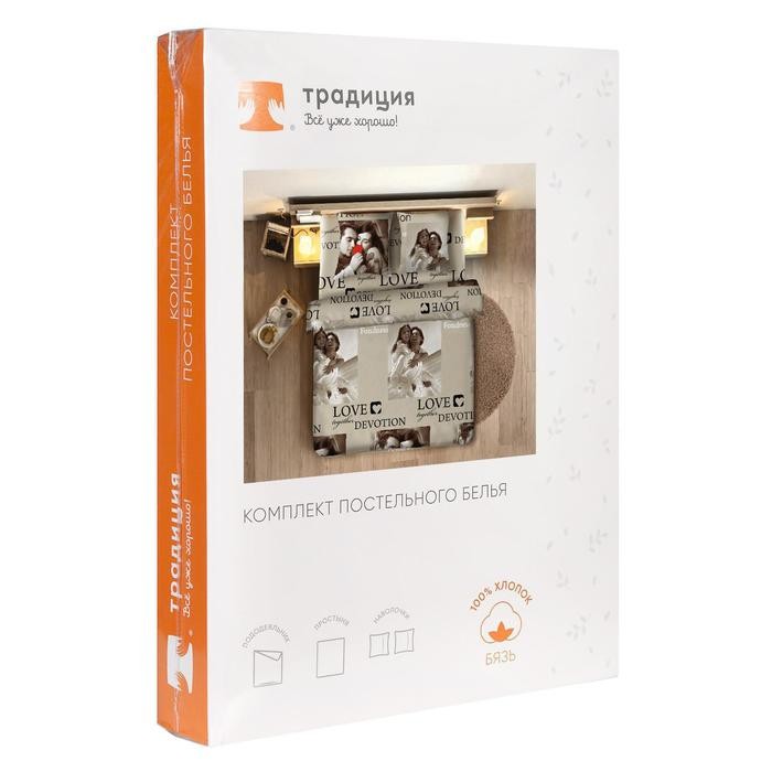 Постельное бельё «Традиция: Сладкая парочка беж», 2 сп., 175×217 см, 180×220 см, 70×70 см. 2 шт.,бязь 125 г/м, хлопок 100%