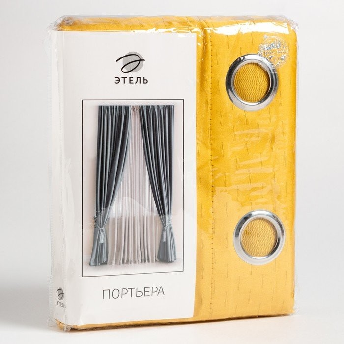 Штора портьерная Этель «Штрихи» цв.желтый,на люверсах 250*265 см, 100% п/э