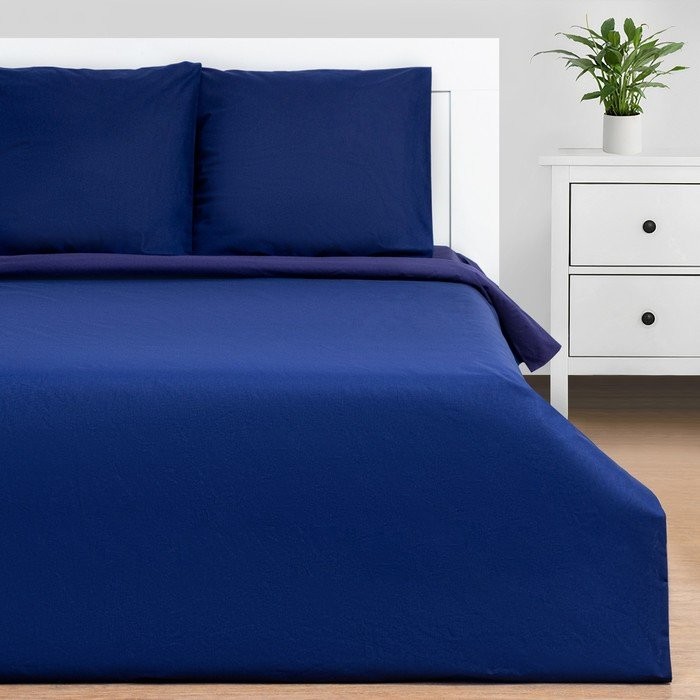 Постельное бельё Этель 1.5 цвет синий, 143*215 см, 150*214 см, 70*70 см — 2 шт, поплин