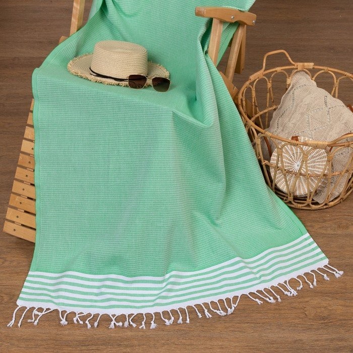 Пештемаль для пляжа, бани, сауны Waffle 100×180 см, салатовый