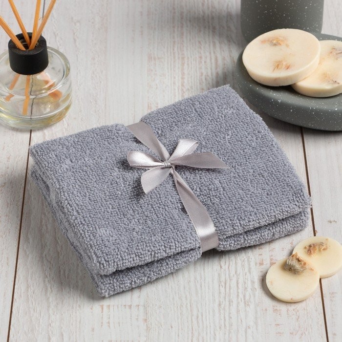 Набор махровых декоративных салфеток светло-серый, 2шт., 340 г/м2, 30×30 см