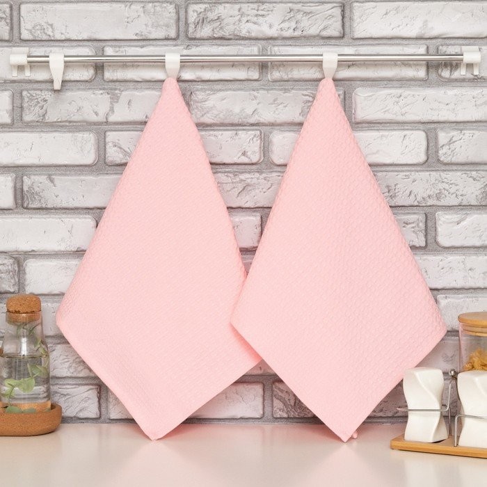 Набор кухонных полотенец Доляна, цвет розовый, 35х60см-2шт, 100% хл, вафля, 220 гр/м2