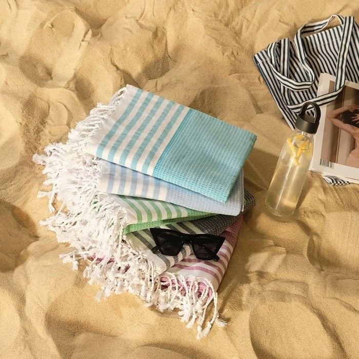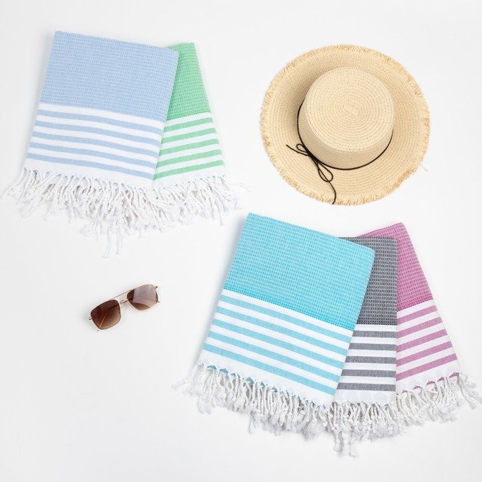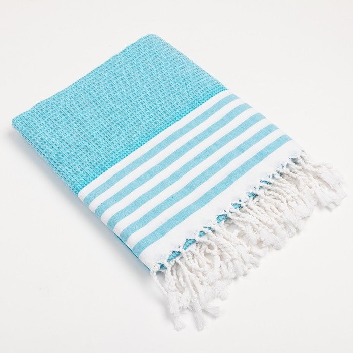 Пештемаль для пляжа, бани, сауны Waffle 100×180 см, голубой