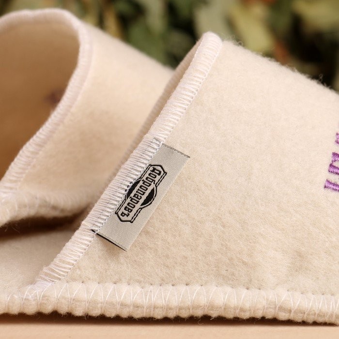 Тапочки для бани белые с вышивкой «Нужный человек» женские (26 см внутр. стелька)