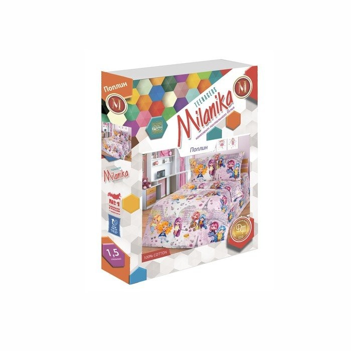 Постельное бельё 1,5сп Миланика Каникулы 145х215см, 150х215см, 70х70см 2 шт, поплин 108г/м, хлопок 100%