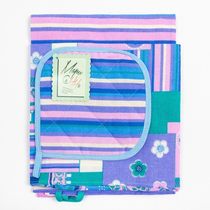 Кухонный набор Мари Санна Сирень+орнамент (прихватка+полотенце+фартук), рогожка