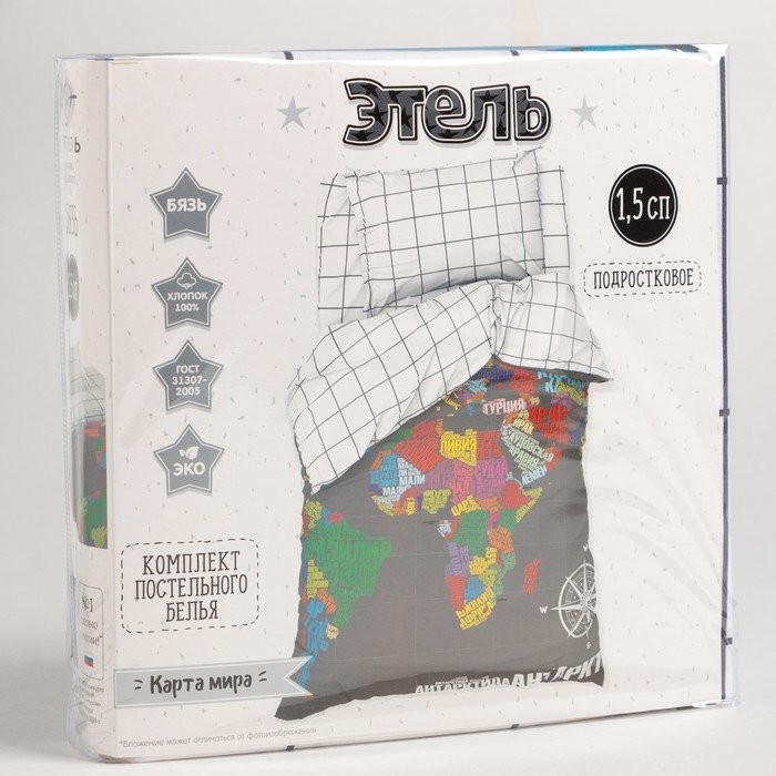 Постельное бельё Этель 1,5 сп «Карта мира» 143×215 см, 150×214 см, 50×70 см -1 шт, 100% хлопок, бязь представлено к заказу по по вашим размерам. Рабочий артикул: 7582931. Стоимость будет зависеть от выбранных опций и стартует от 1 715 руб. В интернет-магазине Decoo вы сможете заказать постельное белье в любых размерных вариациях.