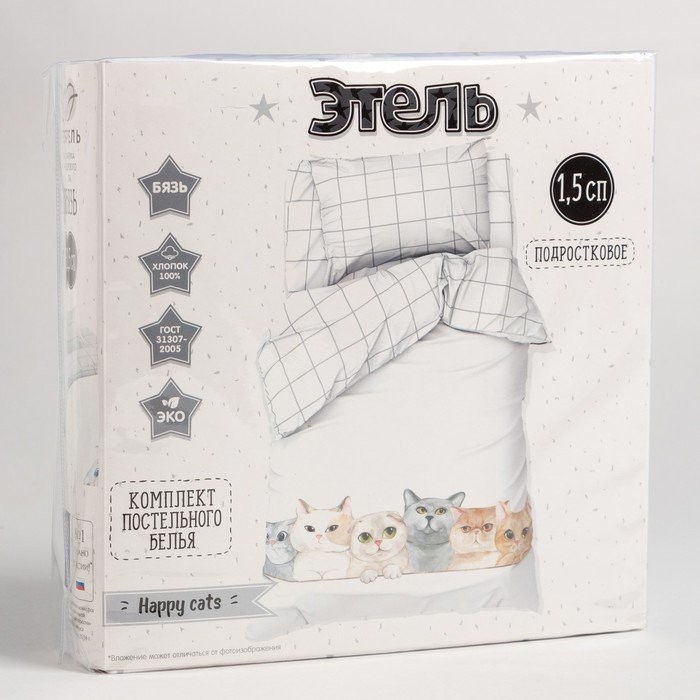 Постельное бельё Этель 1,5 сп «Happy cats» 143×215 см, 150×214 см, 50×70 см -1 шт, 100% хлопок, бязь