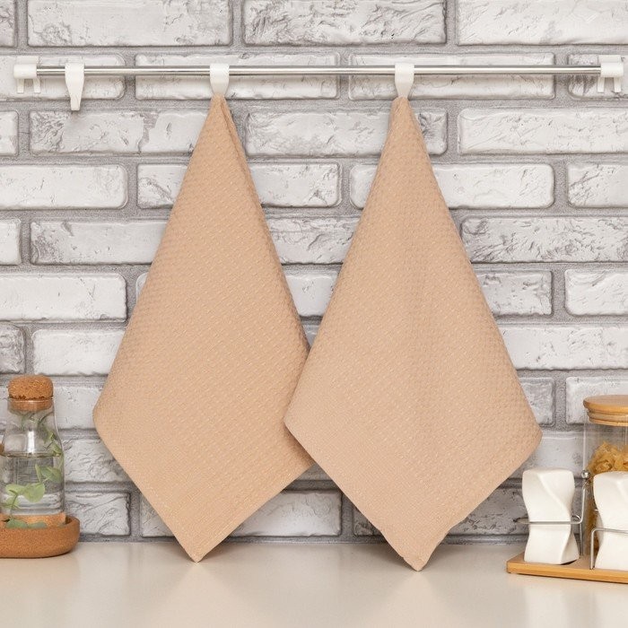 Набор кухонных полотенец Доляна, цвет бежевый, 35х60см-2шт, 100% хл, крупная вафля, 220 гр/м2