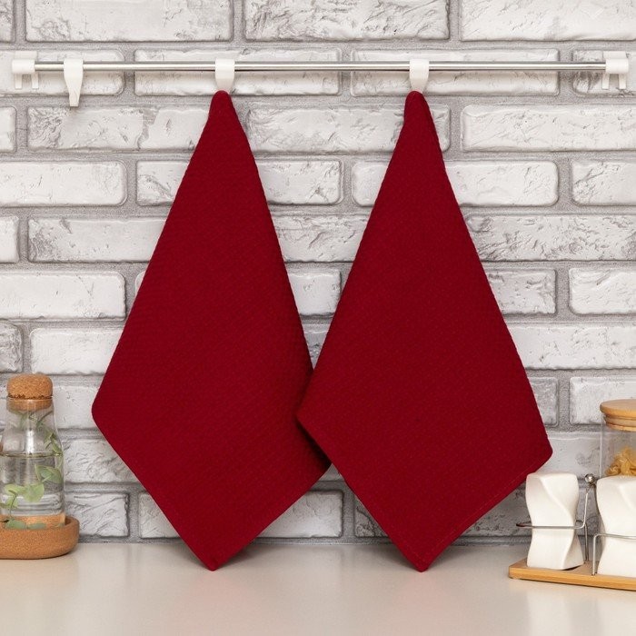 Набор кухонных полотенец Доляна, цвет бордовый, 35х60см-2шт, 100% хл, вафля, 220 гр/м2