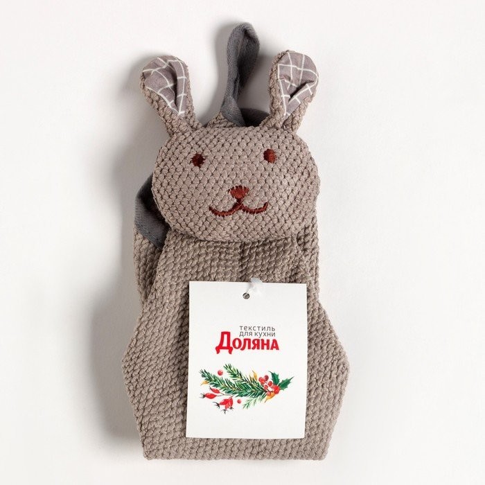 Полотенце кухонное Доляна «Заяц», цв. серый 30*30 см 280гр/м2