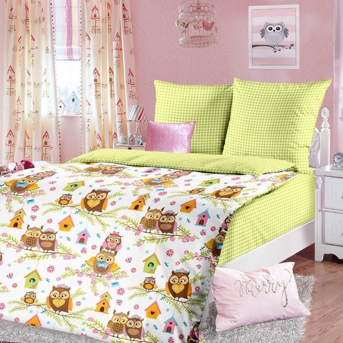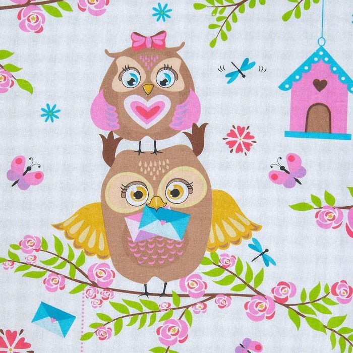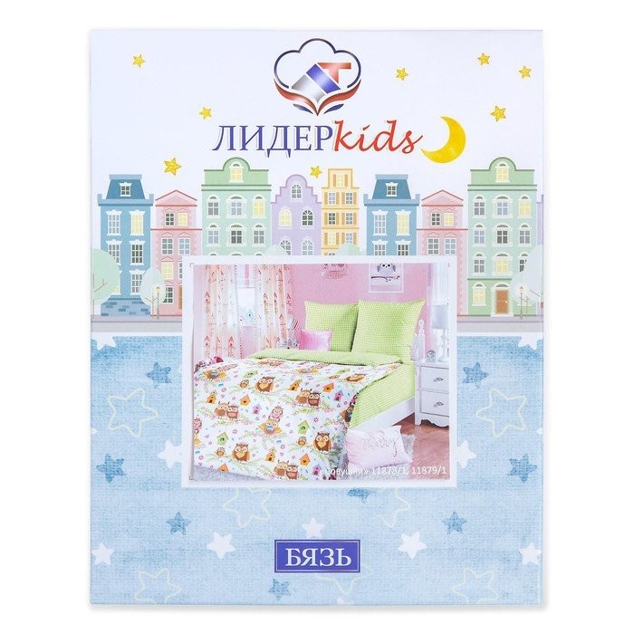 Постельное бельё 1,5сп ЛидерТекс Совушки вклад 145×215, 150×215, 70×70 2шт, бязь 120гр/м хл100%
