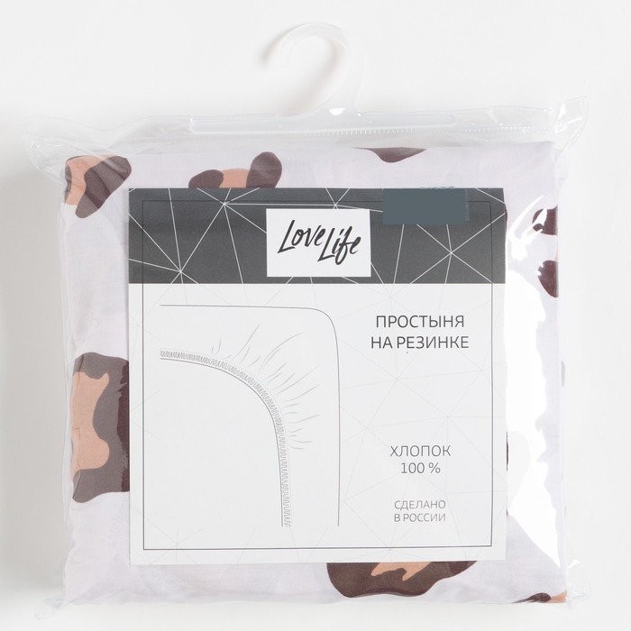 Простыня на резинке LoveLife «Леопард» 180*200*25см, 100% хлопок, сатин, 125г/м²