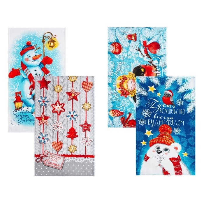 Набор полотенец кух. «Доляна» С Новым счастьем 35х60см-4шт, 100% хл