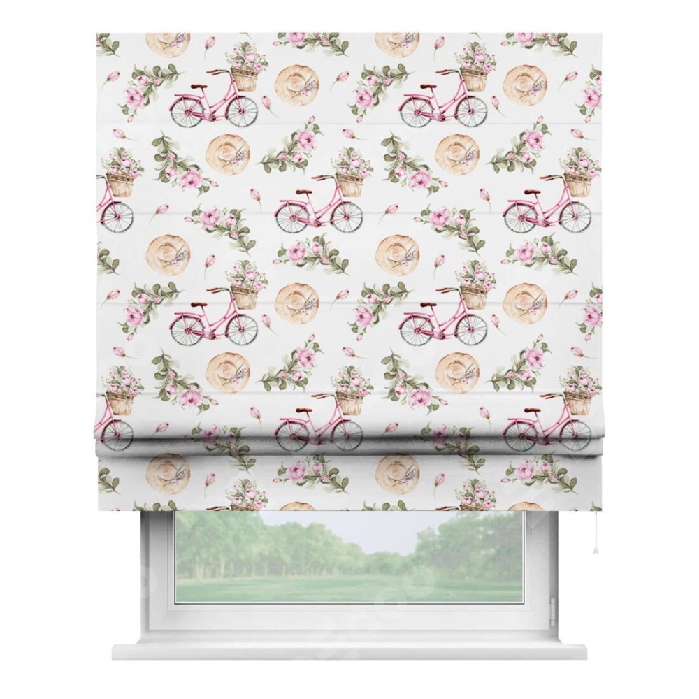 Римская штора «Кортин» для проема «Розовый велосипед»