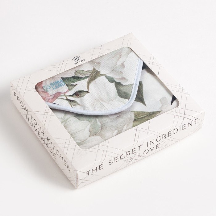 Кухонный набор Этель «Пионы», полотенце 40×73 см, прихватка 19×19 см, фартук 60×65 см