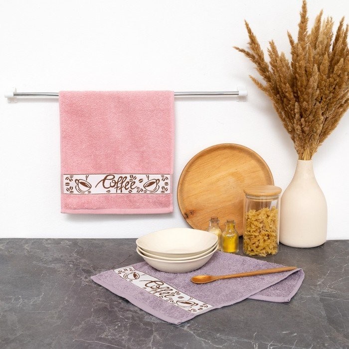 Комплект полотенец махровых пепельно-лавандовый/фламинго 30*50 400г/м, хл100%