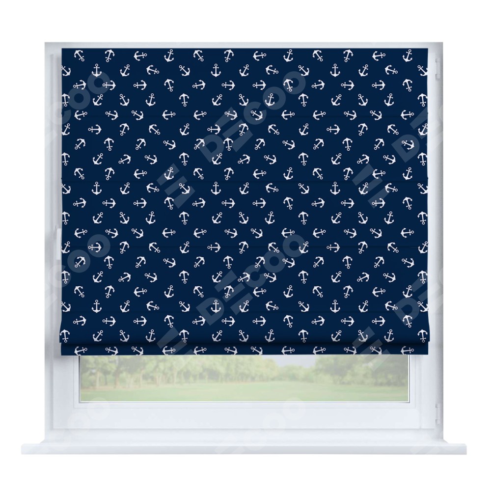 Римская штора производителя «Cortin», устанавливается на створку окна, пошита из ткани блэкаут с нанесением сублимационной печати «Морские якори». Штора шьётся по индивидуальным размерам, для данного типа римской шторы возможная ширина от 35 до 150 см., высота до 250 см.