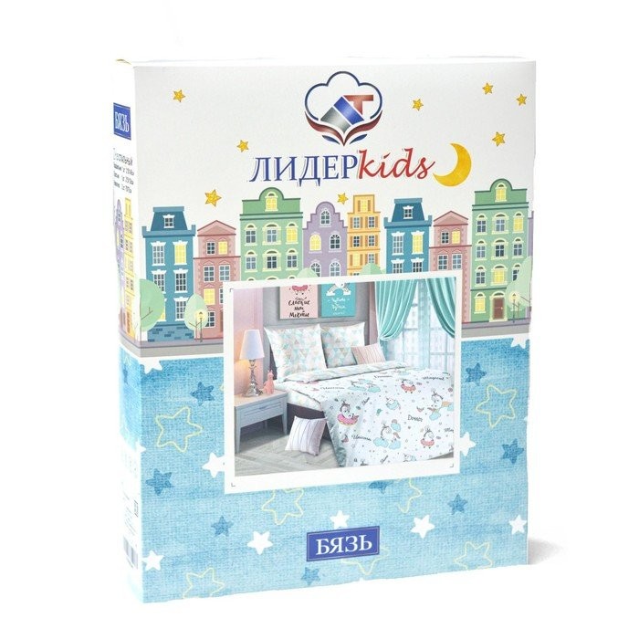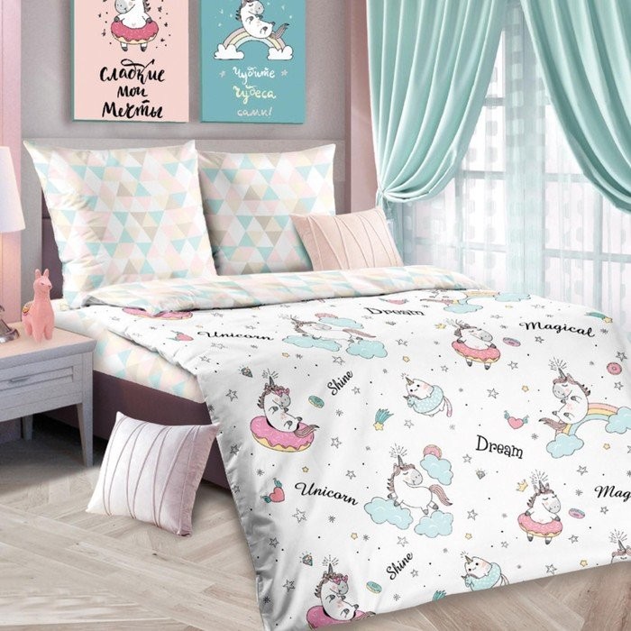 Постельное бельё 1,5сп ЛидерТекс Единорожки 145×215, 150×215, 70×70 1шт, бязь 120гр/м хл100%