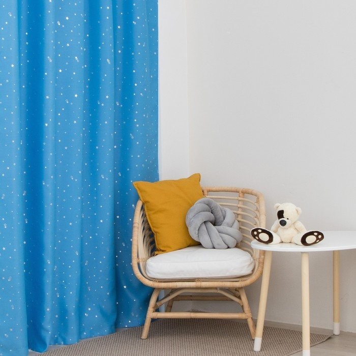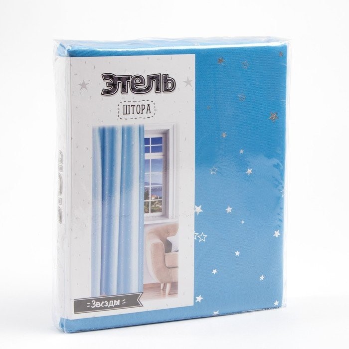Портьера Этель «Звезды» без держателя, цвет голубой, 170×260 см, блэкаут, 100% полиэстер