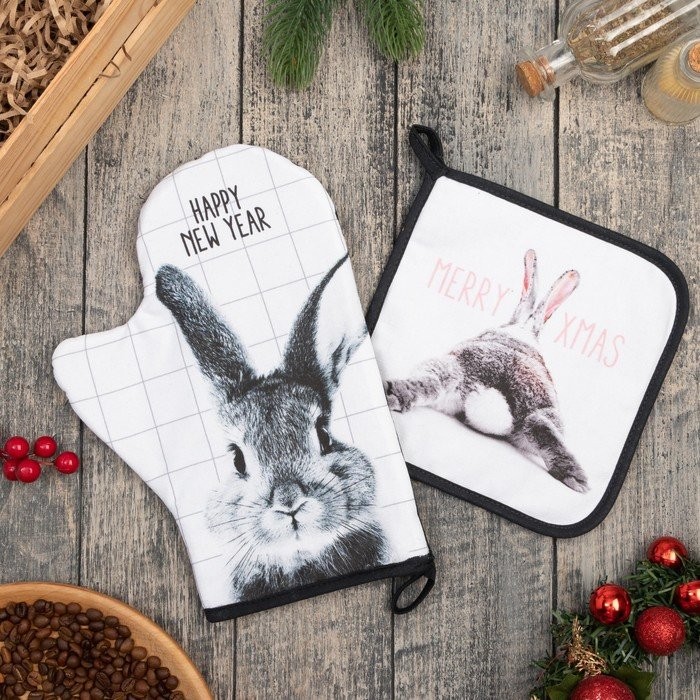 Набор кух. «Merry xmas» варежка-прихватка 20×28 см, прихватка 19×19 см, 100% хл