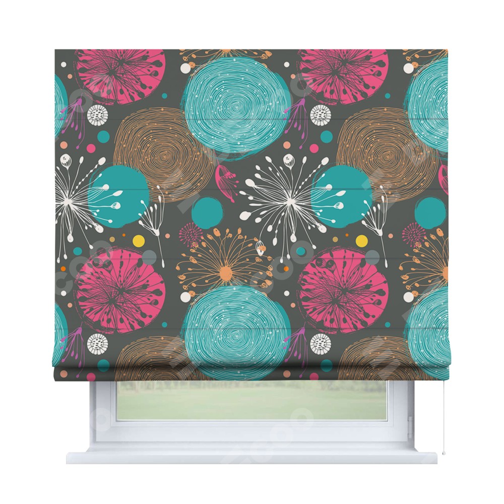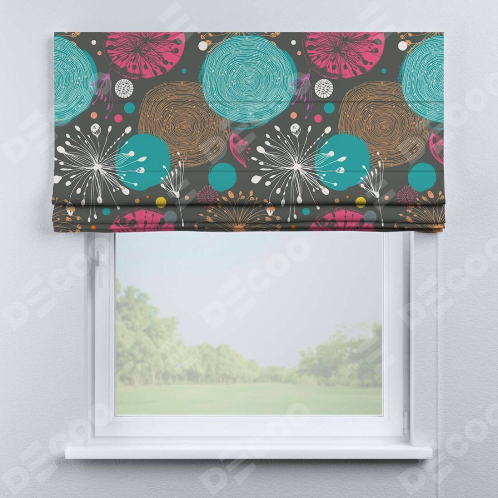 Римская штора производителя «Cortin», используется для проёма, пошита из ткани блэкаут с нанесением сублимационной печати «Милый гранж». Имеет универсальный механизм и подходит для монтажа: на потолок, на стену и в нишу.