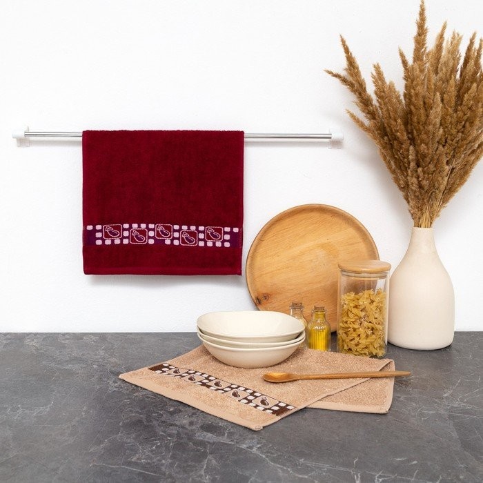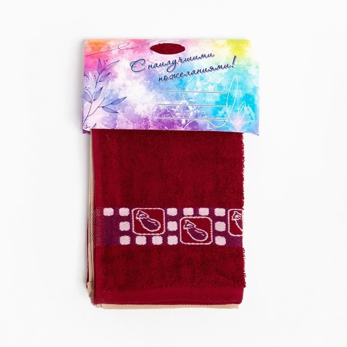Комплект полотенец махровых красное вино/миндаль 30*50 400г/м, хл100%