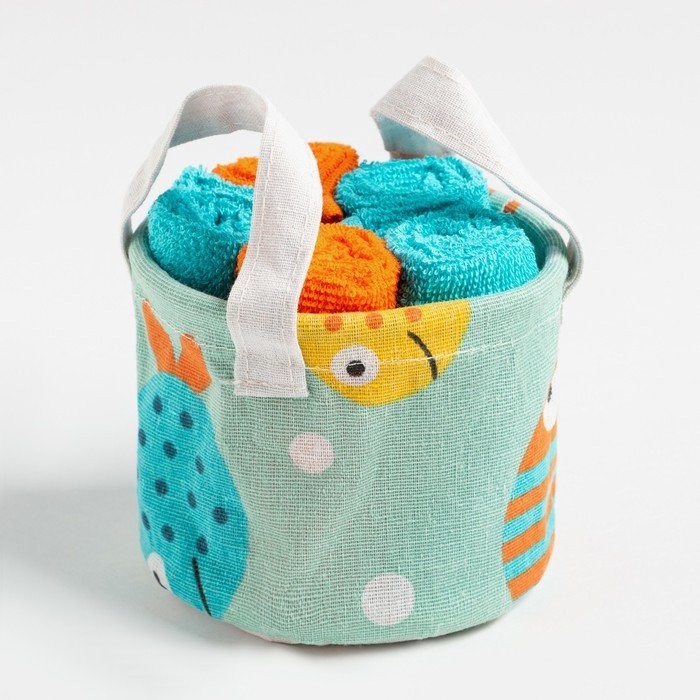 Набор салфеток махровых универсальных в корзинке Этель «Морской» 30*30см-5шт,100% хл,340г/м2