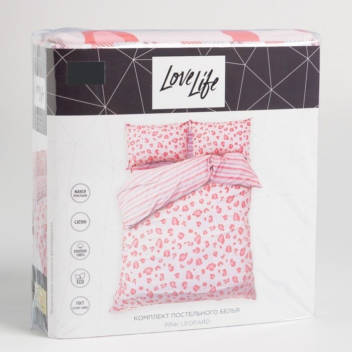 Постельное бельё LoveLife 2сп Pink leopard 175×215 см, 200×225 см, 50х70см-2шт, 100%хлопок, сатин, 125г/м