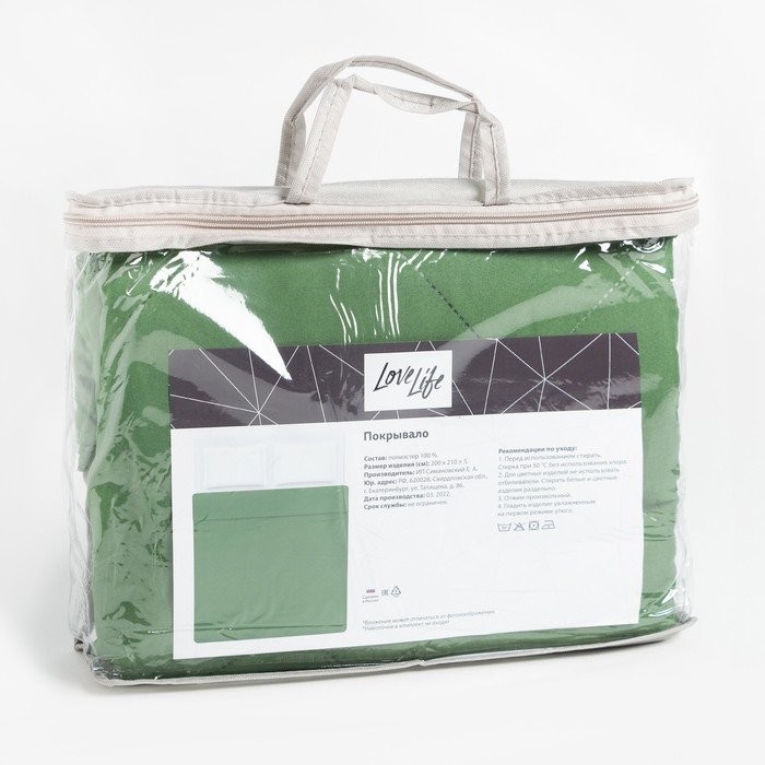 Покрывало LoveLife 2 сп 180×210±5 см, цвет зелёный, микрофайбер, 100% п/э
