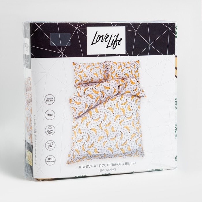 Постельное бельё LoveLife 2сп Bananas 175×215 см, 200×225 см, 50х70см-2шт, 100%хлопок, сатин, 125г/м