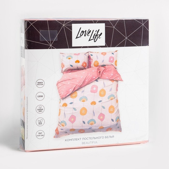 Постельное бельё LoveLife евро Beautiful 200×217 см, 225×240 см, 50х70см-2шт, 100%хлопок, сатин, 125г/м²