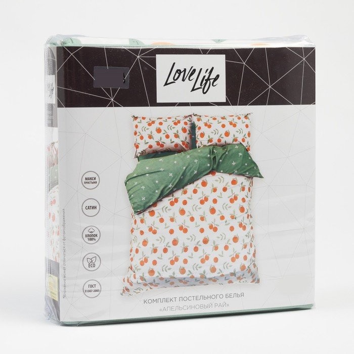 Постельное бельё LoveLife евро «Апельсиновый рай» 200×217 см, 225×240 см, 50х70см-2шт, 100%хлопок, сатин, 125г/м