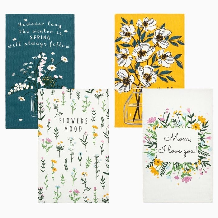 Набор полотенец кух. «Доляна» Hello spring 35×60 см -4 шт, 100% хл, вафля 160 г/м2