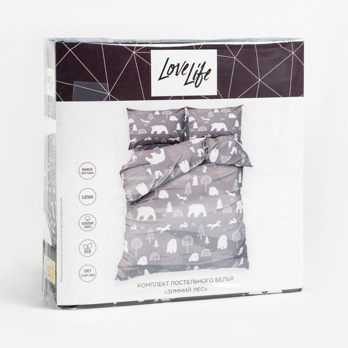 Постельное бельё LoveLife Дуэт «Зимний лес» 143×215 см-2шт, 225×240 см, 50×70 см-2шт, 100%хлопок, сатин