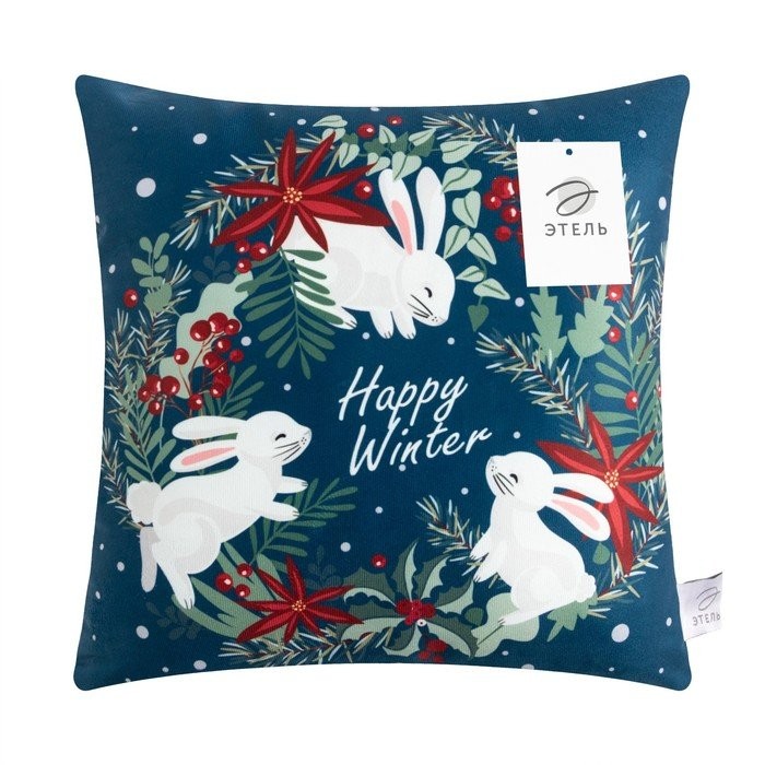Подушка декоративная «Happy winter», 40*40 см, 100% п/э, велюр