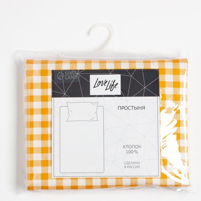 Простыня LoveLife «Клетка» 150*225 см, цв. желтый, 100% хлопок, сатин, 125г/м²
